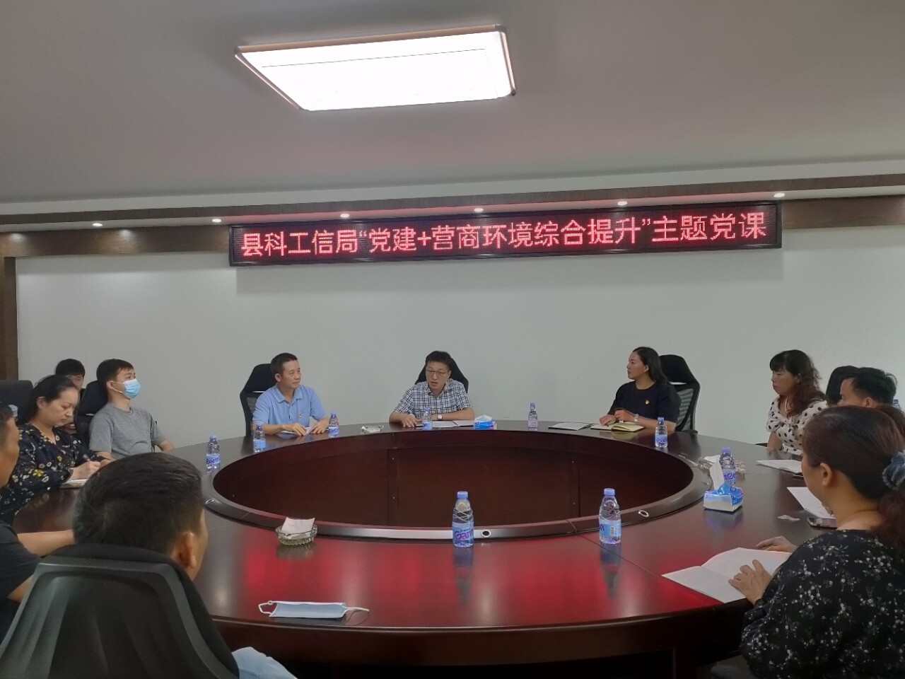 為貫徹落實縣委縣政府“營商環境綜合提升年”的有關安排,充分發揮黨建引領的作用,4月29日上午,縣科工信局直屬機關黨委專職副書記曾健同志以“黨建+營商環境綜合提升”為主題,為局黨員干部職工講專題黨課。