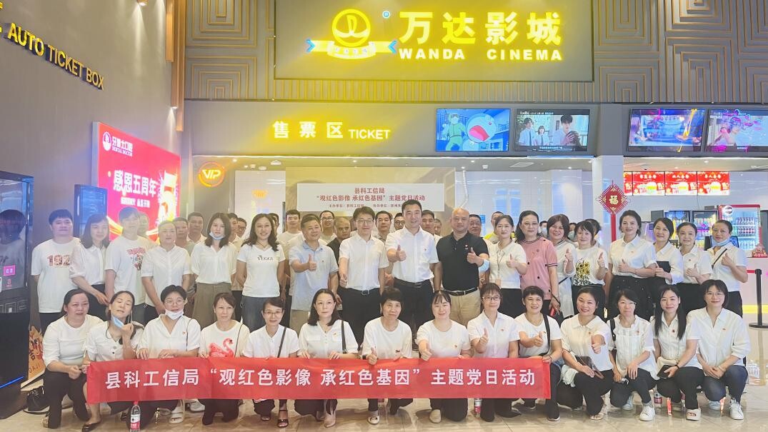 6月30日,縣科工信局直屬機關黨委聯合博羅天虹商場黨支部在天虹萬達影院開展了“觀紅色影像 承紅色基因”主題黨日活動?;顒觾热葜饕ㄖ販厝朦h誓詞、觀看警示教育、發放政治生日賀卡和觀看紅色勵志影片??h科工信局直屬機關全體黨員干部和博羅天虹商場黨支部全體黨員參加了活動。