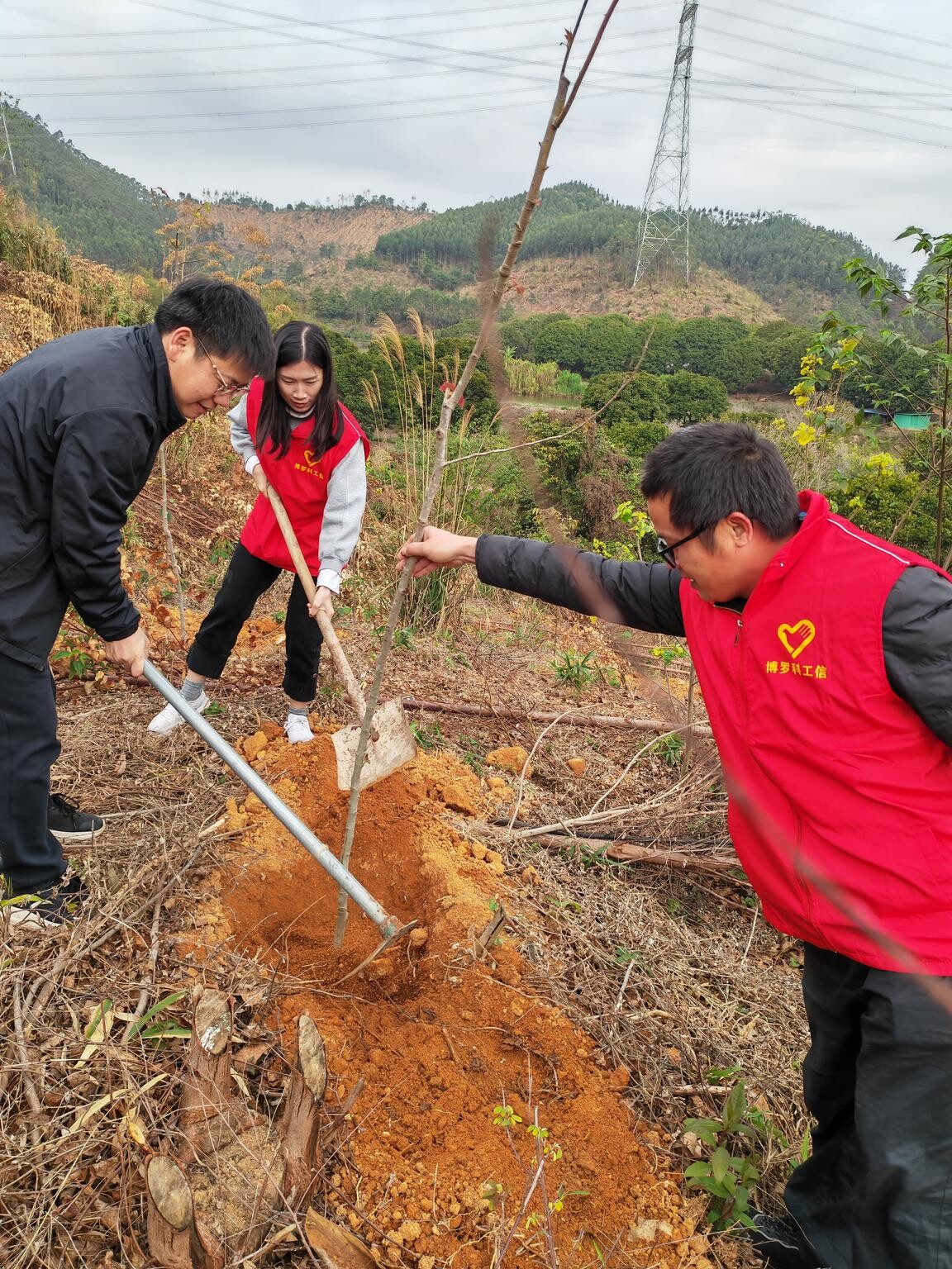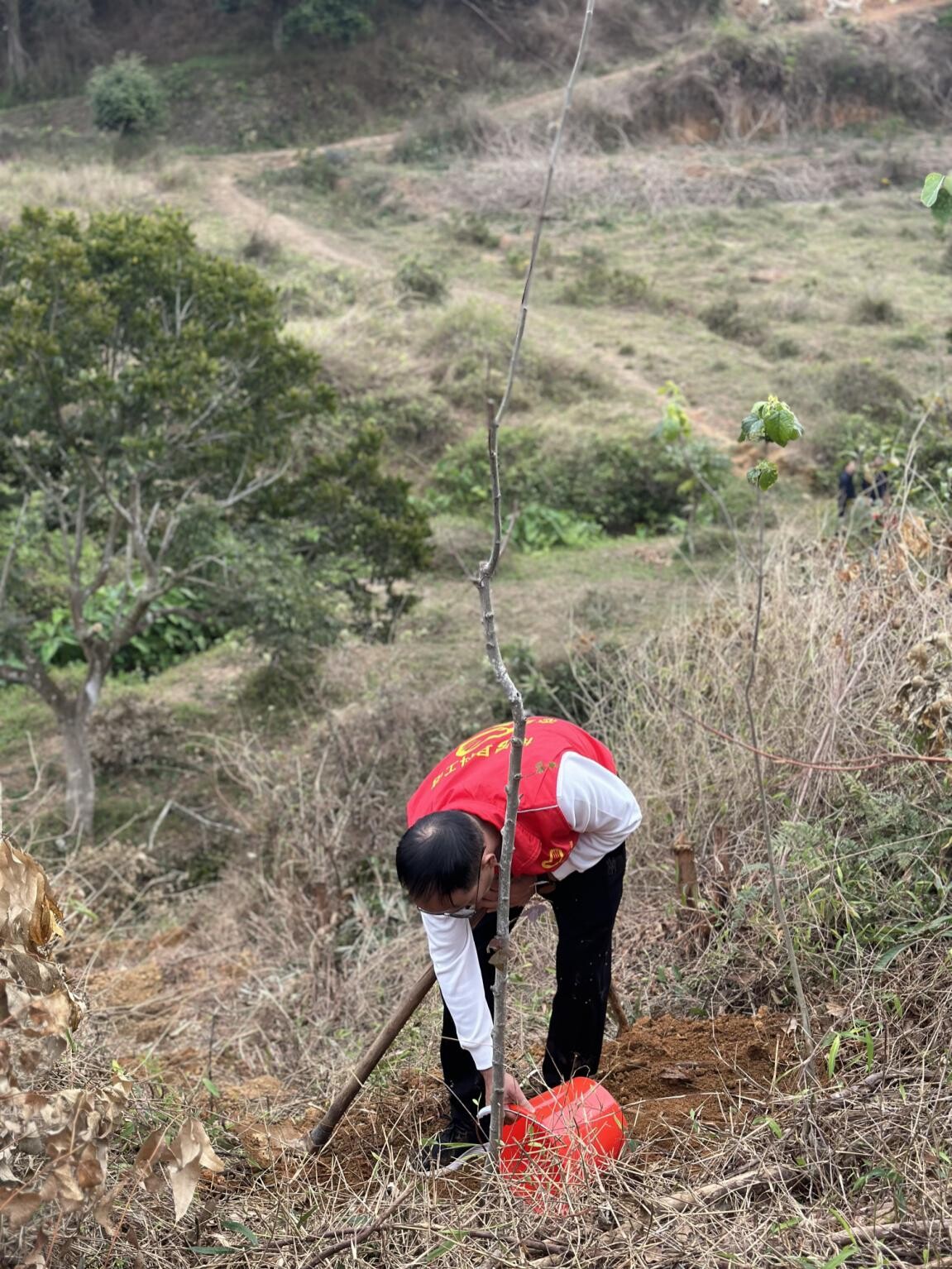 在植樹活動現場,大家分工協作、干勁十足,揮鍬鏟土、扶樹入坑、培實新土、提桶澆水,各個環節銜接有序、配合默契,現場一片熱火朝天。在和煦的春風中,新栽的50棵三角楓迎風挺立,錯落有致,為梅花林場增加一片生機,為綠美博羅增添一抹新綠,為推動“百千萬工程”高質量發展貢獻一份力量。