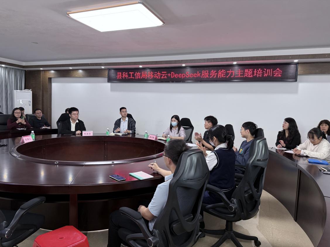 為提升縣科工信局干部職工對AI工具的使用能力,推動AI技術賦能政府工作,進一步提升政務服務效率和智能化水平。3月上旬,縣科工信局舉辦移動云+DeepSeek服務能力主題培訓會,由總經濟師廖詩珊主持會議。