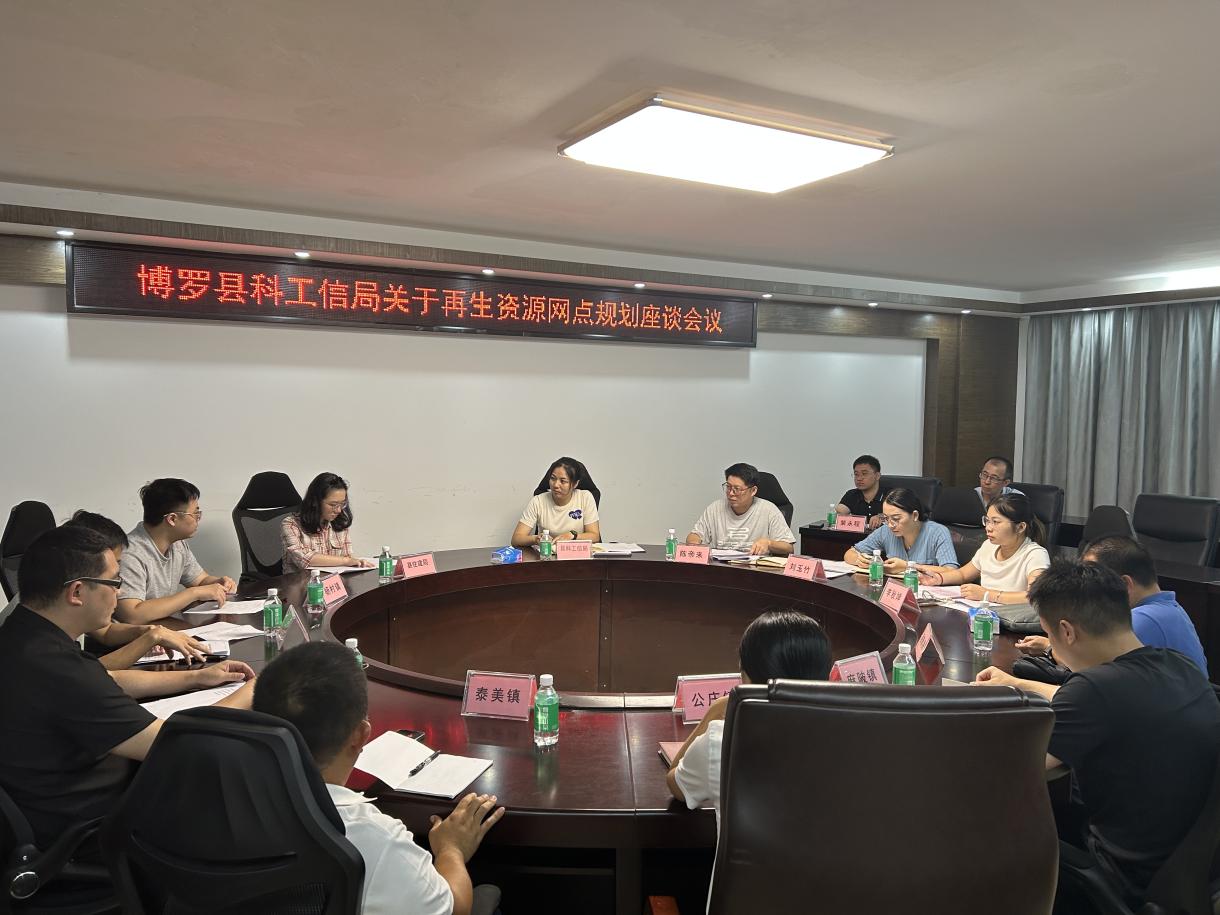 7月中下旬,博羅縣再生資源網點規劃座談會分三場在博羅縣科技工業和信息化局如期進行。座談會由縣科工信局組織,由第三方規劃單位惠州日報社東江創新發展研究院主導,邀請了縣市監局、住建局、自然資源局、發改局、生態環境分局,以及各鎮街等單位業務相關負責人進行座談。此次座談會是為了開展再生資源產業發展方向及回收網點規劃工作,分析再生資源產業發展現狀與趨勢、回收網點規劃的需求與挑戰等。