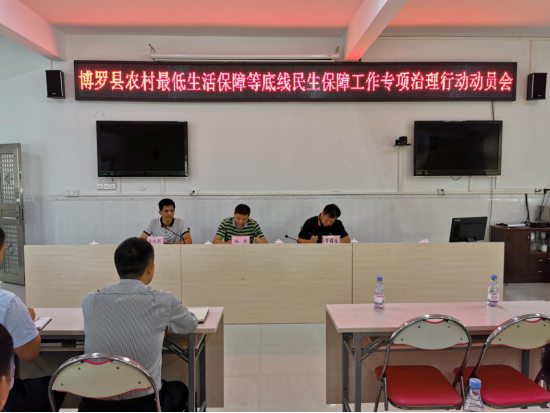 為推動“不忘初心、牢記使命”主題教育工作深入開展,貫徹落實中央、省、市、縣紀委關于漠視侵害群眾利益問題專項整治工作要求和民政部關于深化農村低保專項治理工作電視電話會議相關精神,縣民政局于2019年11月5日召開全縣農村最低生活保障等底線民生保障工作專項治理行動動員會。會議由縣民政局黨組成員、副局長朱永昌同志主持,黨組書記、局長羅耀生同志、市民政局人事科科長楊勇同志參加會議并講話,參會人員有各鎮(街道、羅浮山管委會)分管民政工作領導和民政辦主任、縣民政局相關業務股室負責人及工作人員。