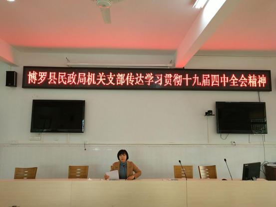 12月20日,博羅縣民政局組織機關全體工作人員集中學習黨的十九屆四中全會精神,注重把學習貫徹十九屆四中全會精神與深入開展“不忘初心、牢記使命”主題教育結合起來,以更好地推進民政各項工作。