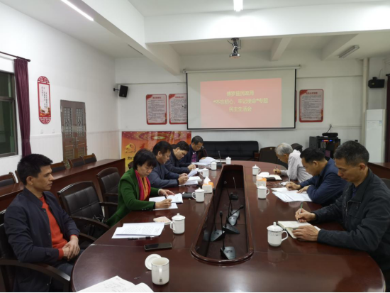 按照中央、省市縣委部署要求,12月5日上午,縣民政局黨組召開(kāi)“不忘初心、牢記使命”主題教育專(zhuān)題民主生活會(huì),按照習(xí)近平總書(shū)記關(guān)于“四個(gè)對(duì)照”“四個(gè)找一找”的要求,緊扣學(xué)習(xí)貫徹習(xí)近平新時(shí)代中國(guó)特色社會(huì)主義思想這一主線(xiàn),聚焦“不忘初心、牢記使命”主題,結(jié)合思想工作實(shí)際,檢視問(wèn)題,深刻剖析,坦誠(chéng)開(kāi)展批評(píng)與自我批評(píng),主動(dòng)認(rèn)領(lǐng)班子問(wèn)題,細(xì)化整改措施,明確努力方向。民政局黨組書(shū)記、局長(zhǎng)羅耀生主持會(huì)議并講話(huà),縣委主題教育第八指導(dǎo)組副組長(zhǎng)李龍華到會(huì)指導(dǎo),縣民政局黨組成員參加會(huì)議。