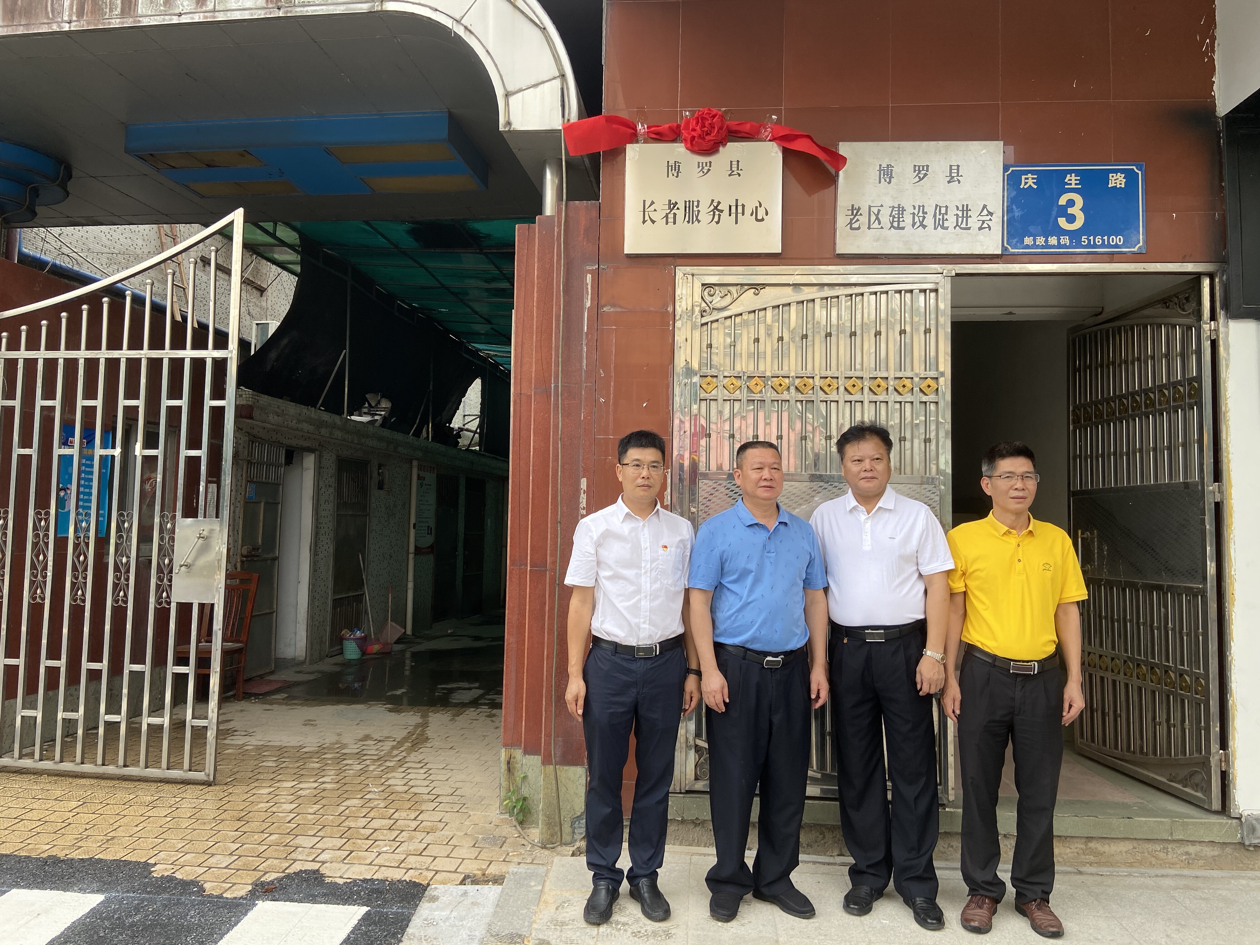 2020年7月31日上午,博羅縣長者服務中心掛牌儀式在羅陽街道慶生路3號舉行,市民政局副局長、市長者服務局(籌)黨組成員陳利金,縣政府辦黨組成員、縣金融工作局局長魏盛強,縣民政局黨組書記、局長羅耀生,縣民政局黨組成員、縣長者服務中心主任范志良等領導及相關工作人員參加了掛牌儀式。隨后,縣長者服務中心組織社工和志愿者在現場派發有關我縣養老恵老政策的宣傳資料。