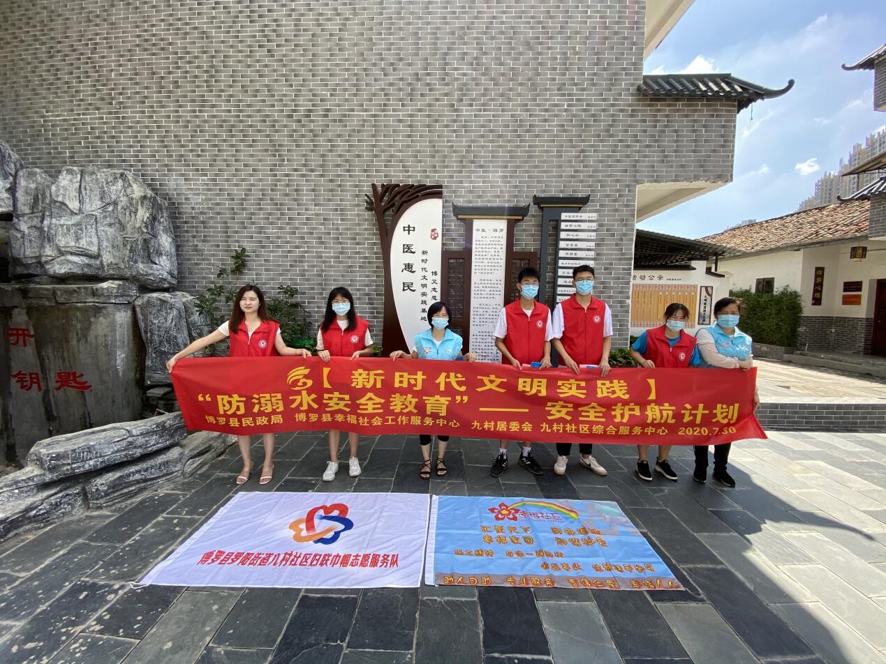 一直以來,溺水是中小學生意外傷亡的頭號殺手,夏季更是溺水事件的高發期。為此,九村居委會聯合九村社區綜合服務中心、幸福公益隊策劃,于2020年7月30日在九村社區開展“防溺水安全教育-安全護航計劃”社區宣傳活動。