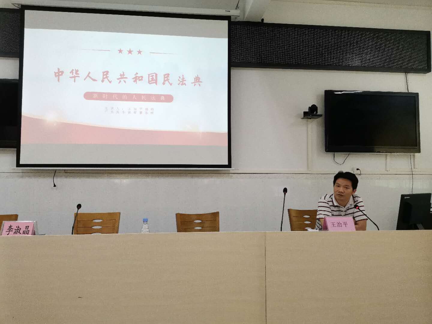 8月26日,縣民政局邀請廣東兆豐律師事務所王治平律師為局機關黨員干部、下屬單位負責人,各社會組織黨支部書記就《民法典》開展專題講座。