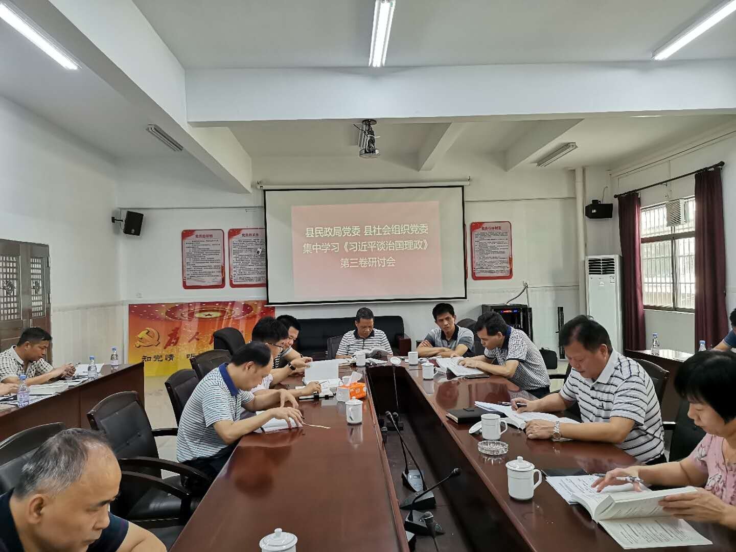 9月4日,縣民政局黨組理論學習中心組舉行理論學習(擴大)會議,集中學習研討《習近平談治國理政》第三卷。縣民政局黨組書記羅耀生同志主持會議,縣民政局全體黨組成員、各股室和下屬黨委負責人,縣社會組織黨委委員參加了學習研討會。