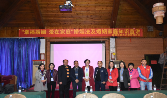 2017年12月13日,由博羅縣民政局、博羅縣婚姻家庭建設(shè)協(xié)會共同舉辦的婚姻導(dǎo)航大講堂活動系列講座,在博羅縣湖鎮(zhèn)鎮(zhèn)響水下洞村舉行,為當(dāng)?shù)氐母咐相l(xiāng)親們開展《婚姻導(dǎo)航》婚姻家庭知識普法公益講座。由婚姻登記處輔導(dǎo)室咨詢師黃艷老師為大家講述幸?;橐鍪腔?,愛在家庭是核心,婆媳相處講技巧,夫妻恩愛秘決等知識。黃老師以故事的引導(dǎo),測試的體驗,自身的故事、家長心得的分享等方式進(jìn)行了闡述。贏得了鄉(xiāng)親們的陣陣掌聲和認(rèn)可。活動有村支委、村小組長、村婦聯(lián)主任等約80多人參加?;顒蝇F(xiàn)場發(fā)放了《婚姻法》,婚期、孕期、育期幸福指南讀物份,幸?;橐黾彝ハ盗兄R等資料約400多份。現(xiàn)場氛圍喜慶熱鬧,本次講座在笑聲、掌聲中劃上了完美的句號。