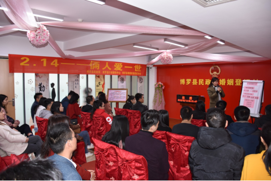 2018年02月14日,由博羅縣民政局和博羅縣婚姻家庭建設協會舉辦的新婚知識講座在婚姻登記處頒證室舉行。