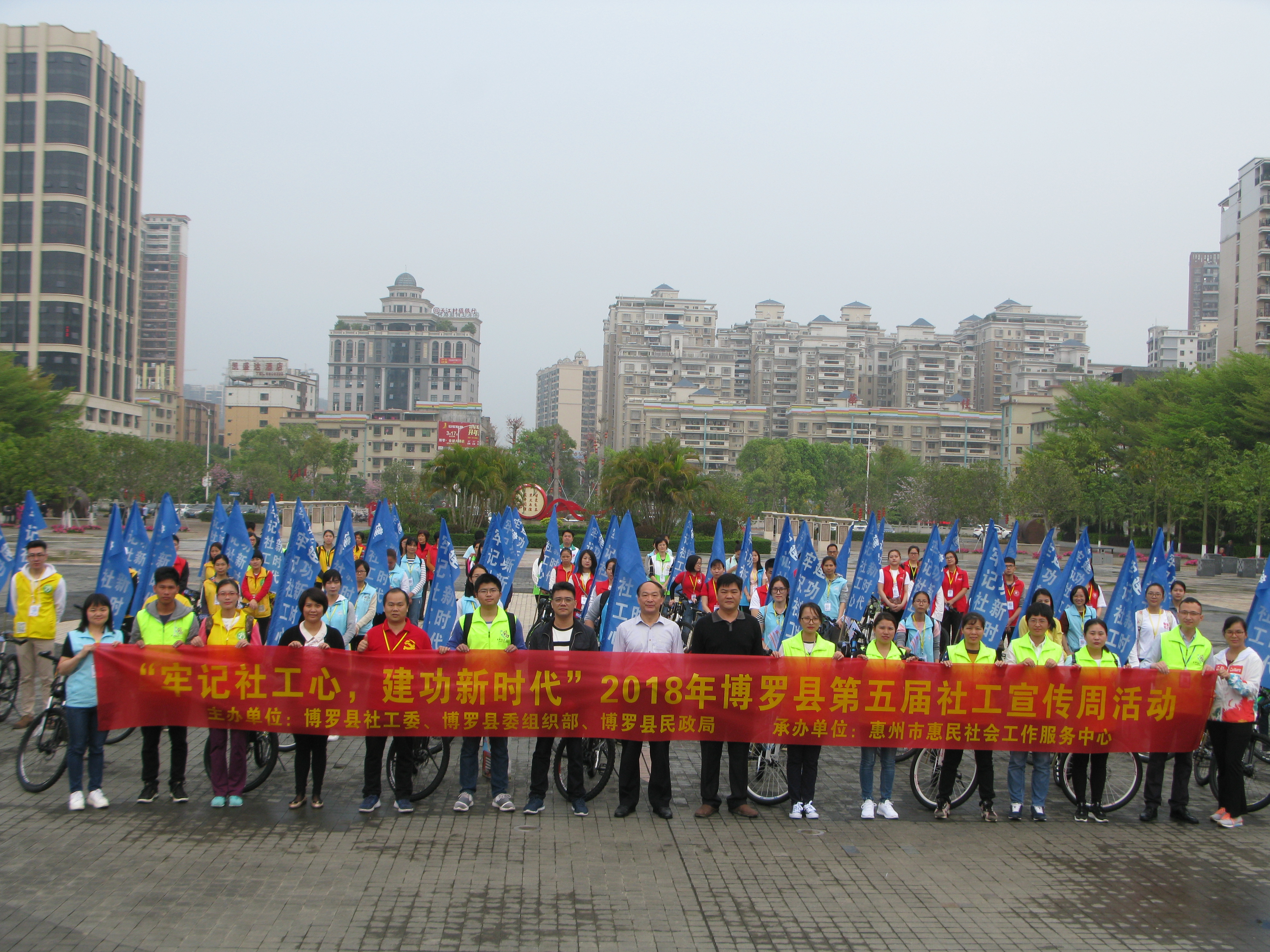 本次活動由博羅縣社工委、博羅縣委組織部、博羅縣民政局主辦,惠州市惠民社會工作服務(wù)中心承辦。縣委政法委副書記、縣社工委專職副主任翟元清,縣社工委專職委員曾繁江, 縣民政局副主任科員陳惠政等領(lǐng)導(dǎo)參加了此次活動。