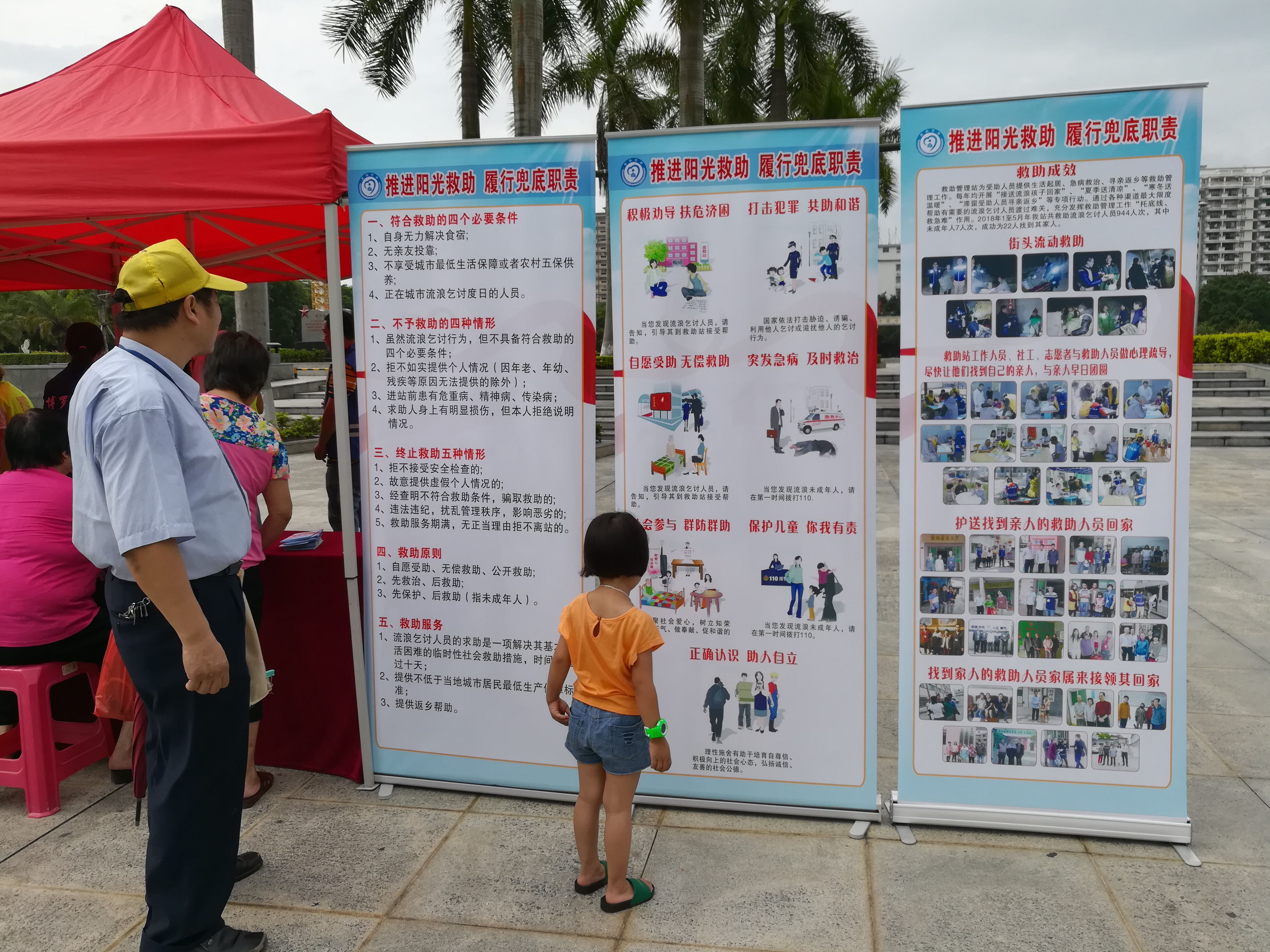 6月19日早上不到8點,在縣城文化廣場,宣傳活動的帳篷才剛剛搭建好,就有很多市民前來咨詢,有的在看我們的宣傳板,有的拿來宣傳冊在認真看,市民朋友都說以前都以為誰都可以到救助站求助的,看了宣傳后才知道,原來到救助站求助也是有條件的:1.自身無力解決食宿;2.無親友投靠;3.不享受城市最低生活保障或者農村五保供養;4.正在城市流浪乞討度日的人員,要符合以上四個條件才可以救助的。通過這次的宣傳活動,市民朋友知道了救助站每年救助了那么多需要救助的流浪人員,特別是流浪未成年人、流浪精神障礙患者等,為和諧博羅做出了不懈努力。