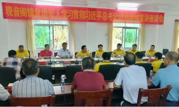 2018年6月9日上午,惠州市退役士兵就業創業服務促進會工作人員與觀音閣鎮部分退役軍人進行了一場以“學習貫徹習近平總書記重要講話精神”為主題的宣講座談會。座談中,大家圍繞學習貫徹習近平總書記重要講話精神和全國“兩會”精神進行了熱烈討論。大家一致認為,習近平總書記寄語廣東“四個走在全國前列”的殷切期望,為我們做好各項工作提供了寶貴精神財富、強大思想武器和科學行動指南,表示將勇于擔當,為廣東在營造共建共治共享社會治理格局上走在全國前列貢獻力量。會后,促進會工作人員與退伍老兵親切交流,詳細了解他們的身體狀況、生活情況及困難需求,并向他們送上大米、食用油等生活必需品和祝福,感謝他們為黨和國家事業作出的貢獻。