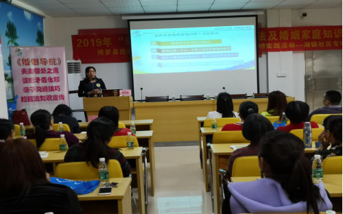 2019年3月20日上午,由博羅縣民政局主辦,博羅縣婚姻家庭建設協會、湖鎮鎮社區協辦的新時代文明實踐活動----《婚姻導航》“幸福婚姻 愛在家庭”婚姻家庭知識宣講,在湖鎮社區三樓會議室順利舉行。