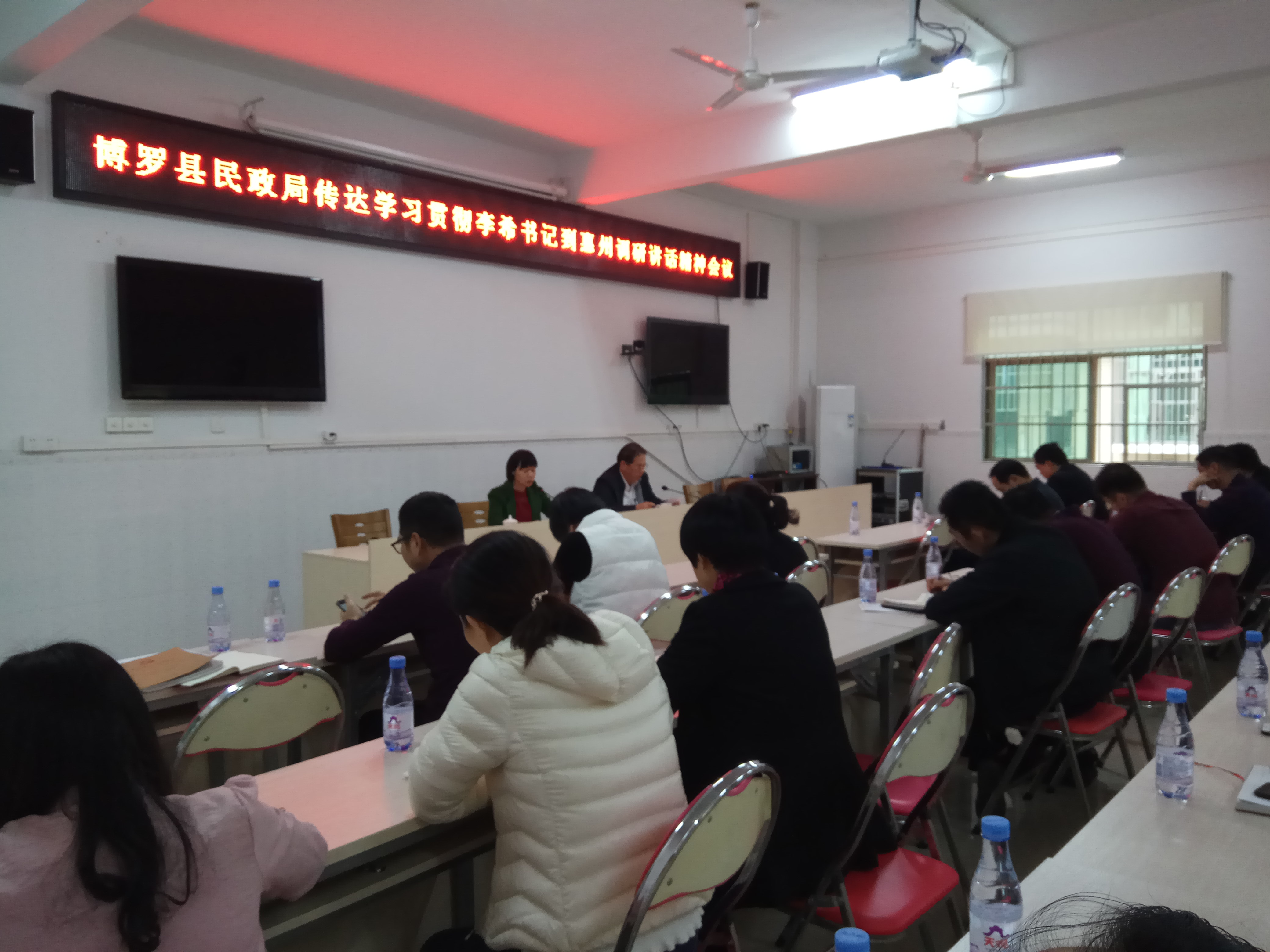 12月7日,縣民政局召開黨組理論中心組(擴(kuò)大)會(huì)議,傳達(dá)學(xué)習(xí)李希書記在惠州調(diào)研講話精神。會(huì)上傳達(dá)了12月6日縣委常委會(huì)(擴(kuò)大)會(huì)議精神,提出了落實(shí)省委書記李希在惠州調(diào)研講話精神的貫徹實(shí)施意見。局領(lǐng)導(dǎo)班子成員、機(jī)關(guān)全體干部職工、下屬單位班子成員參加了會(huì)議。