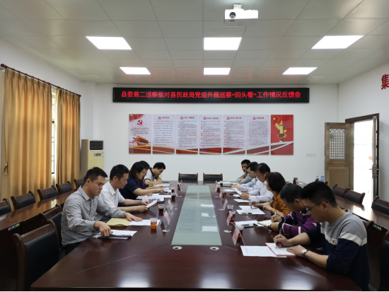 4月19日上午,縣委第二巡察組對縣民政局黨組巡察“回頭看”工作情況反饋會在縣社會組織黨委會議室召開,縣民政局黨組書記、局長羅耀生主持會議。縣委巡察領導小組成員、縣委巡察辦主任林少瓊,縣委第二巡察組組長馬海燕出席了會議。縣民政局黨組(班子)成員及參與分工領導參加了會議。