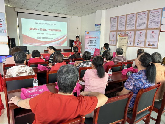 為進一步推進婚俗改革,傳承和發展中華優秀婚姻家庭文化,倡導移風易俗、婚事新辦,弘揚簡約適度、現代文明的婚俗新風,2025年8月27日上午,博羅縣民政局聯合博羅縣婚姻家庭建設協會,在柏塘鎮平安社區開展“新風尚·簡婚禮 共筑幸福婚姻”新時代文明實踐活動。婚姻咨詢師葉麗華憑借豐富的婚姻調解經驗主講,25位社區居民(以奶奶級婦女群眾為主,含部分年輕群體及社工)齊聚一堂,共同探討婚俗改革與幸福婚姻的真諦。