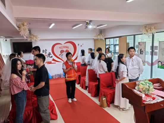 隨后,工作人員為他們頒發了結婚證,并送上了滿載祝福的精美禮品。最后,大家在歡聲笑語中合影留念,定格下這一幸福瞬間,讓愛成為永恒的語言。