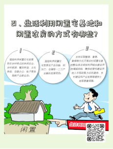 根據《農業農村部關于積極穩妥開展農村閑置宅基地和閑置住宅盤活利用工作的通知》(農經發〔2019〕4號),主要有三種方式:一是鼓勵利用閑置住宅發展符合鄉村特點的休閑農業、鄉村旅游、餐飲民宿、文化體驗、創意辦公、電子商務等新產業新業態。二是鼓勵利用閑置住宅發展農產品冷鏈、初加工、倉儲等一二三產業融合發展項目。三是支持采取整理、復墾、復綠等方式,開展農村閑置宅基地整治,依法依規利用城鄉建設用地增減掛鉤、集體經營性建設用地入市等政策,為農民建房、鄉村建設和產業發展等提供土地等要素保障。