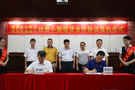 2017年9月30日上午,縣扶貧辦和博羅農(nóng)商銀行在縣城農(nóng)信大廈舉行博羅縣精準(zhǔn)扶貧精準(zhǔn)脫貧小額信用貸款合作協(xié)議的簽約儀式。縣委常委、常務(wù)副縣長(zhǎng)關(guān)文華,中國(guó)人民銀行博羅縣支行行長(zhǎng)龍利民,中國(guó)銀行業(yè)監(jiān)督管理委員會(huì)惠州監(jiān)管分局科長(zhǎng)彭海洋,博羅農(nóng)商銀行黨委書(shū)記、董事長(zhǎng)朱石麒,縣農(nóng)業(yè)和林業(yè)局局長(zhǎng)羅建生,以及縣扶貧辦、金融工作局、財(cái)政局、民政局相關(guān)領(lǐng)導(dǎo)參加了此次儀式。