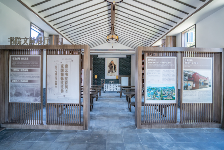 值得關注的是,青云書室兼顧活動定制/體驗空間功能,可靈活根據后續市場化運營所需,結合陳展需求快速調整場地布置,替換展陳內容,如繪畫展、攝影展、研學課堂等場地租賃功能,或茶室、咖啡廳等升級功能,強化運營效益。“青云書室其實也是多種文化交融。”游勇明說,除了從展廳的陳展可以感知外,仔細品味青云書室的變遷,就更為清晰和濃烈。據村中老人介紹,青云書室始建于清朝嘉慶年間,是游氏族人建立的私塾學校,書室坐北向南,東西橫向17米,南北縱向20米,占地340平方米,為四合院形式的磚瓦房結構,距今已有200多年歷史。