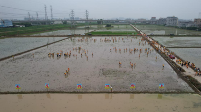 “老師,多少距離插一株秧苗?”“老師,秧苗要插多深啊?”......4月24,正值春耕插秧好時節,在博羅縣絲苗米省級現代農業產業園位于石灣鎮黃西村的種植基地內,300多名身穿黃色校服的小學生以藍天為幕,以秧田為舞臺,手抓秧苗,腳陷泥土,在平整的農田里忙著學插秧,伴隨著陣陣嬉笑聲,不到1小時,一株株青綠的小秧苗就插滿了數畝稻田,不少孩子還意猶未盡,想尋找空田繼續插秧。