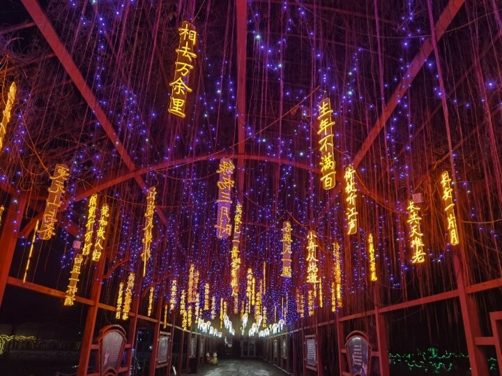 愛心燈光長廊、詩意燈光走廊,利用燈光和造型的搭配,產生了令人意味深長的人文之美。除了賞燈光秀之外,夜里還有文藝表演、篝火晚會、煙花表演以及西游記人物的巡游互動,深受孩子們歡迎。據介紹,燈光秀將持續到10月15日,巡游、表演、煙花表演等則持續到10月5日。
