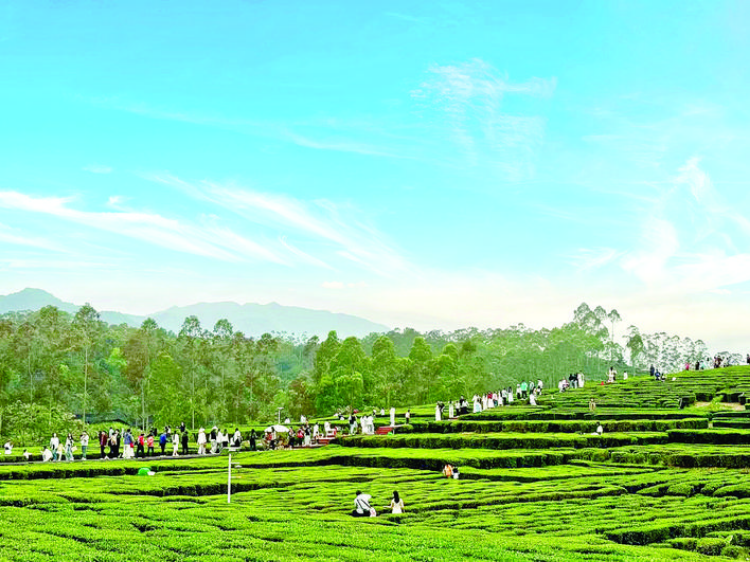 “五一”期間,作為“廣東十大茶鄉”之一的柏塘鎮再次出圈。只是此次并不是因為品茗,而是因茶園之美。小長假中,這里的萬畝茶園成為了游人必須打卡的網紅點之一,其火爆從假期開始一直持續到結束。每天,自駕游車輛絡繹不絕,茶園棧道上都是游人撒歡、拍照打卡的身影。接踵而至的人流,讓這里的春茶、小吃、飲品等供不應求。山茶以另一種方式帶火了柏塘,讓村民拓展收入有了新途徑。