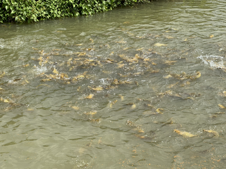 依托山清水秀、水資源豐富的天然優勢,盧屋村大力發展水產養殖業。走進盧屋村水產養殖基地,黃骨魚、七星魚、塘鲺等魚苗在水中歡快游動,一片生機盎然。目前,該基地養殖黃骨魚11萬條、七星魚4萬條、塘鲺5000條。