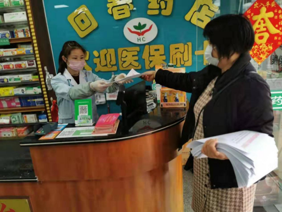 迅速傳達(dá),加強(qiáng)宣傳。采用上門(mén)檢查、發(fā)布通知、即時(shí)通訊等多種方式將文件精神傳達(dá)至轄區(qū)所有藥店,確保全覆蓋,并通過(guò)發(fā)放宣傳單張向群眾宣傳政策,引導(dǎo)群眾配合檢測(cè)體溫、登記購(gòu)藥信息。