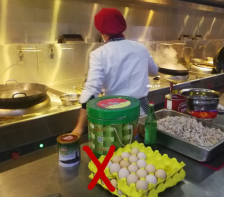 2.原料、半成品、成品應(yīng)分開存放,加工工具及容器應(yīng)按照標(biāo)識嚴(yán)格分開使用。避免生雞蛋與其他食物交叉污染。