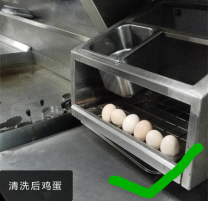 依據(jù)《餐飲服務(wù)食品安全操作規(guī)范》要求嚴(yán)格禽蛋類等食品的加工制作過程。使用雞蛋前,應(yīng)清洗干凈蛋的外殼,必要時消毒外殼。破蛋應(yīng)單獨存放暫存容器內(nèi),確認(rèn)雞蛋未變質(zhì)后再合并存放。盛放或加工制作蛋類原料、畜肉類原料及禽肉類原料的工具和容器宜分開使用。