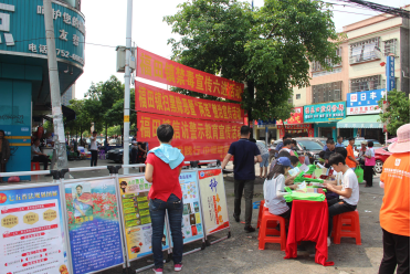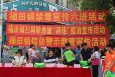 為進一步貫徹落實市、縣關于掃黑除惡專項斗爭以及禁毒法治宣傳工作的要求及部署,8月15日上午,福田鎮鎮綜治辦、掃黑辦、禁毒辦、婦聯、團委、司法所等部門聯合在新農貿市場路口開展了掃黑除惡暨禁毒法治宣傳活動。活動現場設置了咨詢臺,擺放著圖文并茂的宣傳展板,吸引了大批群眾前來參與。