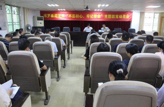 9月12日上午,博羅縣司法局召開“不忘初心、牢記使命”主題教育動員會議。縣司法局黨組書記、局長廖偉峰主持會議,縣主題教育第四指導組副組長劉毅出席會議并作指導講話。縣司法局全體黨員、各司法所所長、職工近70人參加會議。會議深入學習習近平新時代中國特色社會主義思想,認真學習貫徹落實習近平總書記關于“不忘初心、牢記使命”主題教育的重要講話和重要指示批示精神,認真落實中央、省委、“不忘初心、牢記使命”主題教育第一批總結暨第二批部署會議精神及市委、縣委動員會精神,并對司法局開展主題教育工作進行動員部署。