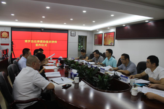 最后,博羅縣司法局與廣東九韜律師事務所、廣東旭利律師事務所、廣東鴻浩律師事務所進行簽約,分別擔任縣法院、縣檢察院、縣看守所法律援助值班工作。
