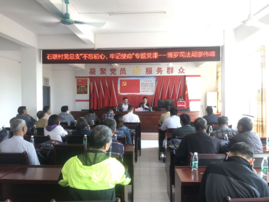 根據(jù)縣司法局“不忘初心、牢記使命”主題教育的安排,11月19日下午,局黨組書(shū)記、局長(zhǎng)廖偉峰到扶貧掛鉤聯(lián)系的石壩鎮(zhèn)石聯(lián)村上專(zhuān)題黨課,石聯(lián)村“兩委”干部及村黨總支部黨員近40人參加了學(xué)習(xí)。