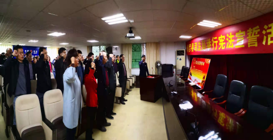在動員講話結束后,在廖偉峰局長的帶領下,完成了憲法宣誓活動。