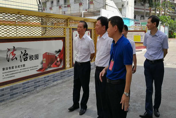 8月8日上午,由市司法局局長潘如新帶隊的市“七五”普法督導檢查組一行在縣政府副縣長、縣公安局長莊惠達、縣司法局長陳錫坤、縣委政法委副書記駱靜華等領導的陪同下,到我縣開展“七五”普法督導工作。