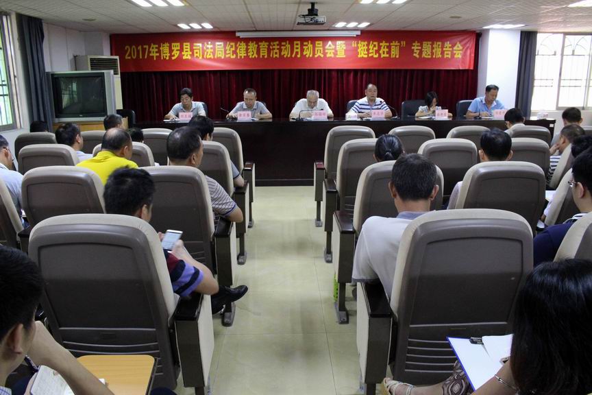 為扎實(shí)推進(jìn)2017年紀(jì)律教育學(xué)習(xí)月活動開展,增強(qiáng)全體干部職工黨紀(jì)法紀(jì)意識, 9月18日上午,我局召開2017年紀(jì)律教育學(xué)習(xí)月活動動員會暨“挺紀(jì)在前”專題學(xué)習(xí)報告會,縣紀(jì)委派駐政法黨委紀(jì)監(jiān)組組長朱志華同志作“挺紀(jì)在前”輔導(dǎo)報告,司法局全體干部職工80多人參加了會議。