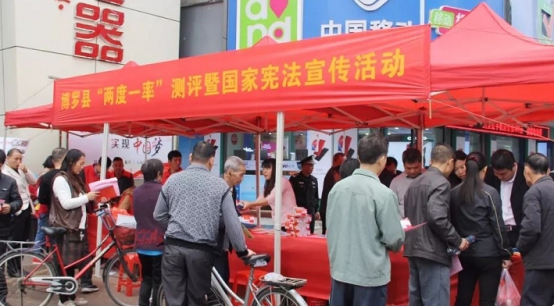12月5日,由博羅縣司法局黨組成員、副局長余日春帶隊(duì),石灣鎮(zhèn)司法所全體人員和“法制副主任”在石灣中心市場門前開展了“兩度一率”測評暨國家憲法宣傳活動。