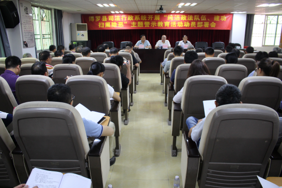 6月11日,我局召開“純潔政法隊(duì)伍、建功掃黑除惡”主題警示教育活動(dòng)動(dòng)員部署會(huì)。局機(jī)關(guān)、各司法所全體人員共80多人參加會(huì)議。局黨組書記、局長陳錫坤主持會(huì)議。會(huì)上,局黨組成員、政工科科長練愛平傳達(dá)學(xué)習(xí)了上級(jí)“純潔政法隊(duì)伍、建功掃黑除惡”主題警示教育活動(dòng)有關(guān)會(huì)議精神;局黨組書記、局長陳錫坤從提高政治站位,充分認(rèn)識(shí)開展主題警示教育活動(dòng)的重要意義;明確工作要求,穩(wěn)步推進(jìn)主題警示教育活動(dòng)各項(xiàng)工作;落實(shí)保障措施,確保主題警示教育活動(dòng)取得實(shí)實(shí)在在的效果等三個(gè)方面,對(duì)我局“純潔政法隊(duì)伍、建功掃黑除惡”主題警示教育活動(dòng)進(jìn)行全面動(dòng)員部署。縣紀(jì)委派駐政法黨委紀(jì)檢組組長朱志華同志作了緊緊壓實(shí)紀(jì)律紅線,強(qiáng)化主體責(zé)任落實(shí)的輔導(dǎo)報(bào)告。朱志華組長分析了當(dāng)前反腐形勢,通過以案說法、以案釋紀(jì),引導(dǎo)全體干部職工:一要增強(qiáng)責(zé)任意識(shí),牢牢繃緊紀(jì)律這根弦;二要嚴(yán)守黨的政治紀(jì)律和政治規(guī)矩,切實(shí)轉(zhuǎn)變工作作風(fēng);三要嚴(yán)守八項(xiàng)規(guī)定、“十六個(gè)不準(zhǔn)”,守住底線;四要勇于擔(dān)當(dāng)進(jìn)取,圍繞中心,服務(wù)大局,為我縣高質(zhì)量建設(shè)“區(qū)域協(xié)調(diào)發(fā)展示范縣”提供法律服務(wù)和保障。