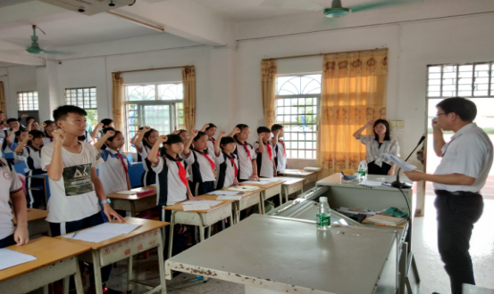 講座中,陳惠忠所長通過法律知識問答、播放視頻、憲法宣誓等環節與學生積極互動,激發他們的學法熱情,播撒法治精神種子。課程通俗有趣,幫助學生了解憲法的地位及重要意義,讓學生了解憲法、在內心尊崇憲法、從早從小樹立憲法法律至上的法治信仰。
