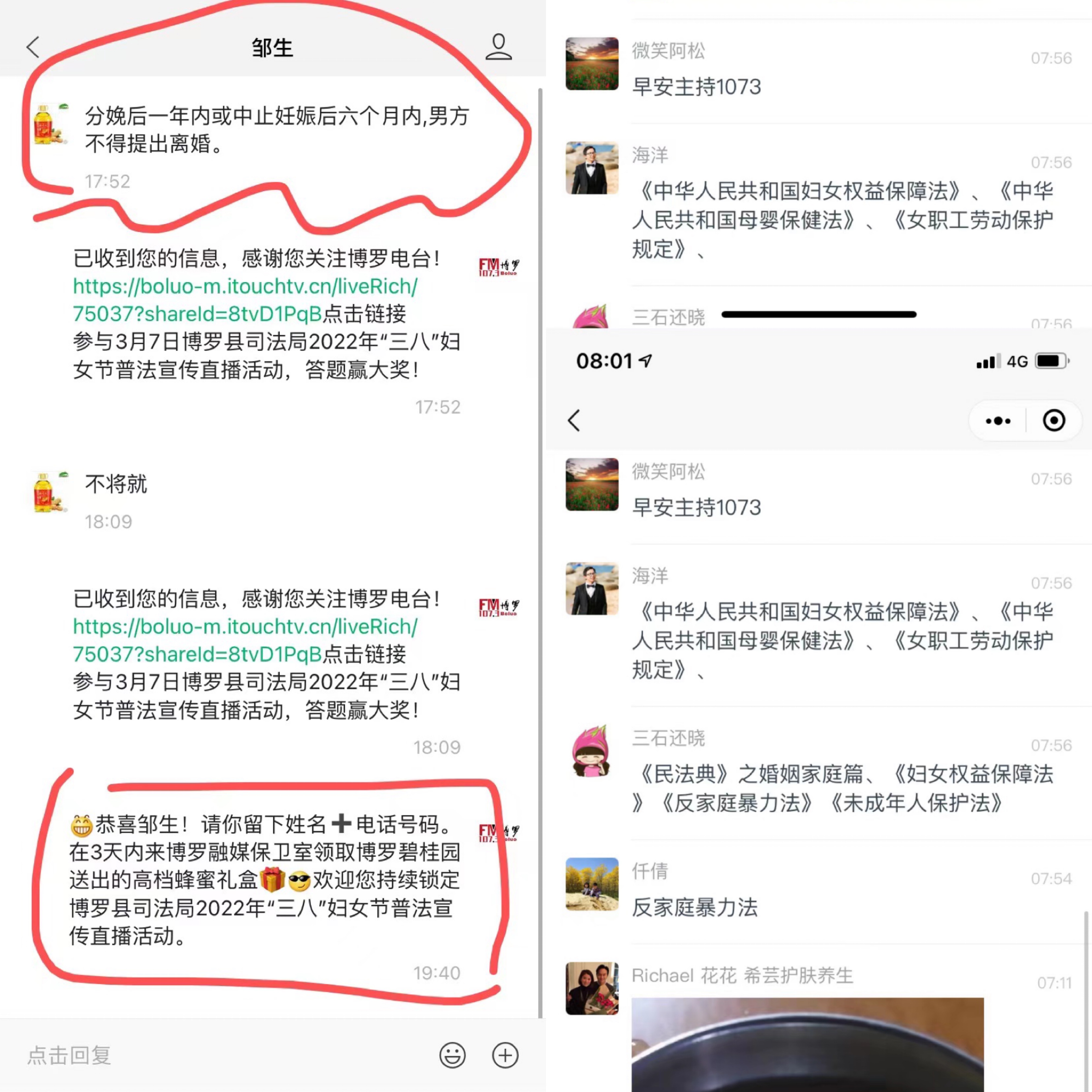 為進(jìn)一步深化婦女法治宣傳教育,切實(shí)提高婦女群眾的法治觀念和依法維權(quán)能力,倡導(dǎo)婦女學(xué)法提素質(zhì)、家庭平安促和諧理念,提升普法宣傳受眾面,營(yíng)造良好的法治環(huán)境,3月7日上午,博羅縣司法局在博羅電視臺(tái)開(kāi)展了以“共迎三八婦女節(jié) 法治宣傳保權(quán)益”為主題的線上普法直播活動(dòng)。