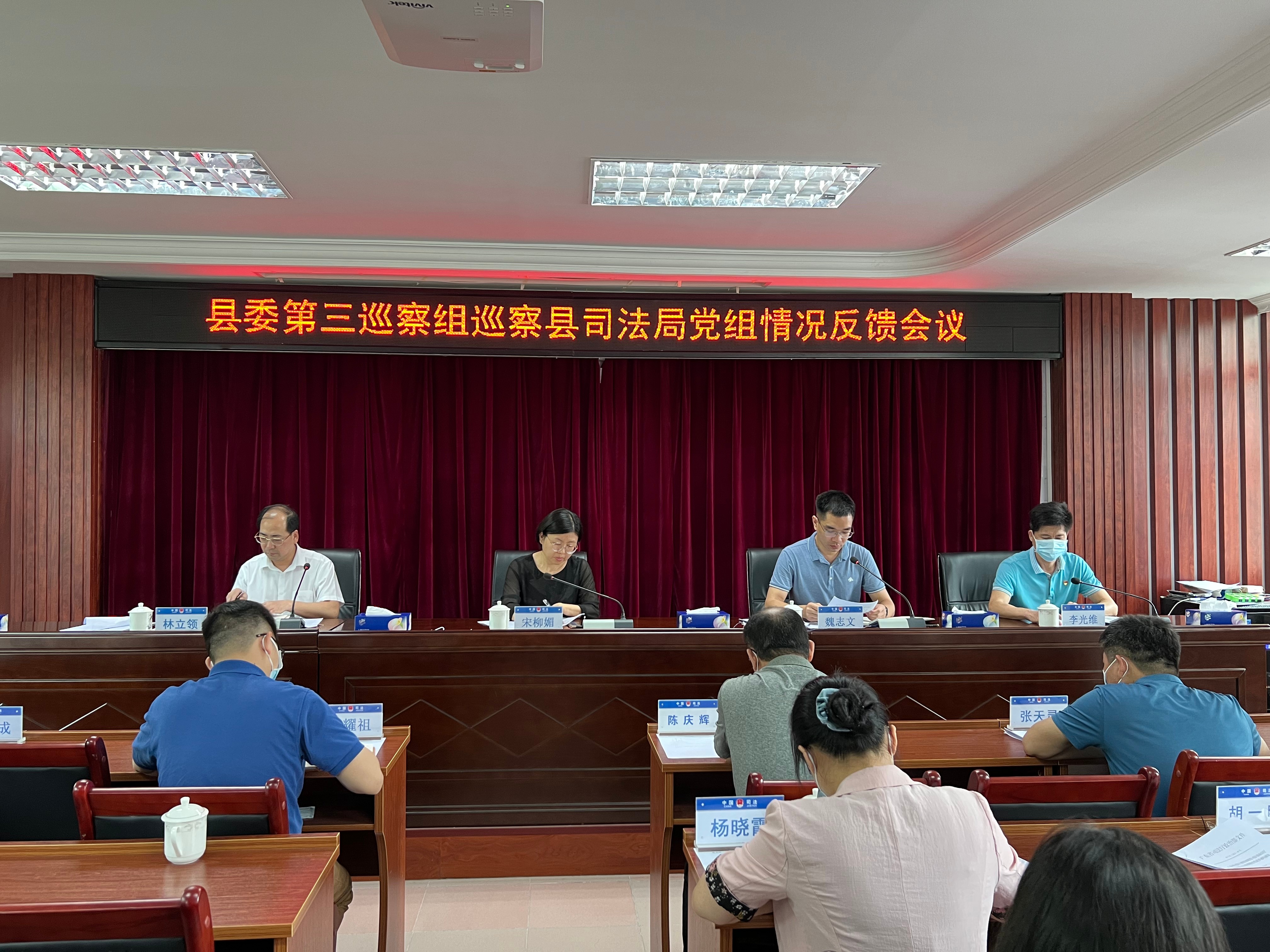 根據(jù)縣委巡察工作領(lǐng)導(dǎo)小組的統(tǒng)一部署,2022年4月26日上午,縣委第三巡察組巡察縣司法局黨組情況反饋會(huì)議在縣司法局四樓會(huì)議室召開(kāi)。縣紀(jì)委常委、縣委巡察工作領(lǐng)導(dǎo)小組成員、縣委巡察辦主任宋柳媚,縣委第三巡察組相關(guān)負(fù)責(zé)人魏志文、李光維,縣紀(jì)委第三派駐紀(jì)檢監(jiān)察組副組長(zhǎng)葉耀祖,以及縣委第三巡察組其他成員,縣司法局機(jī)關(guān)全體干部職工及各司法所負(fù)責(zé)人參加了會(huì)議。會(huì)議由縣司法局黨組書(shū)記、局長(zhǎng)林立領(lǐng)主持。
