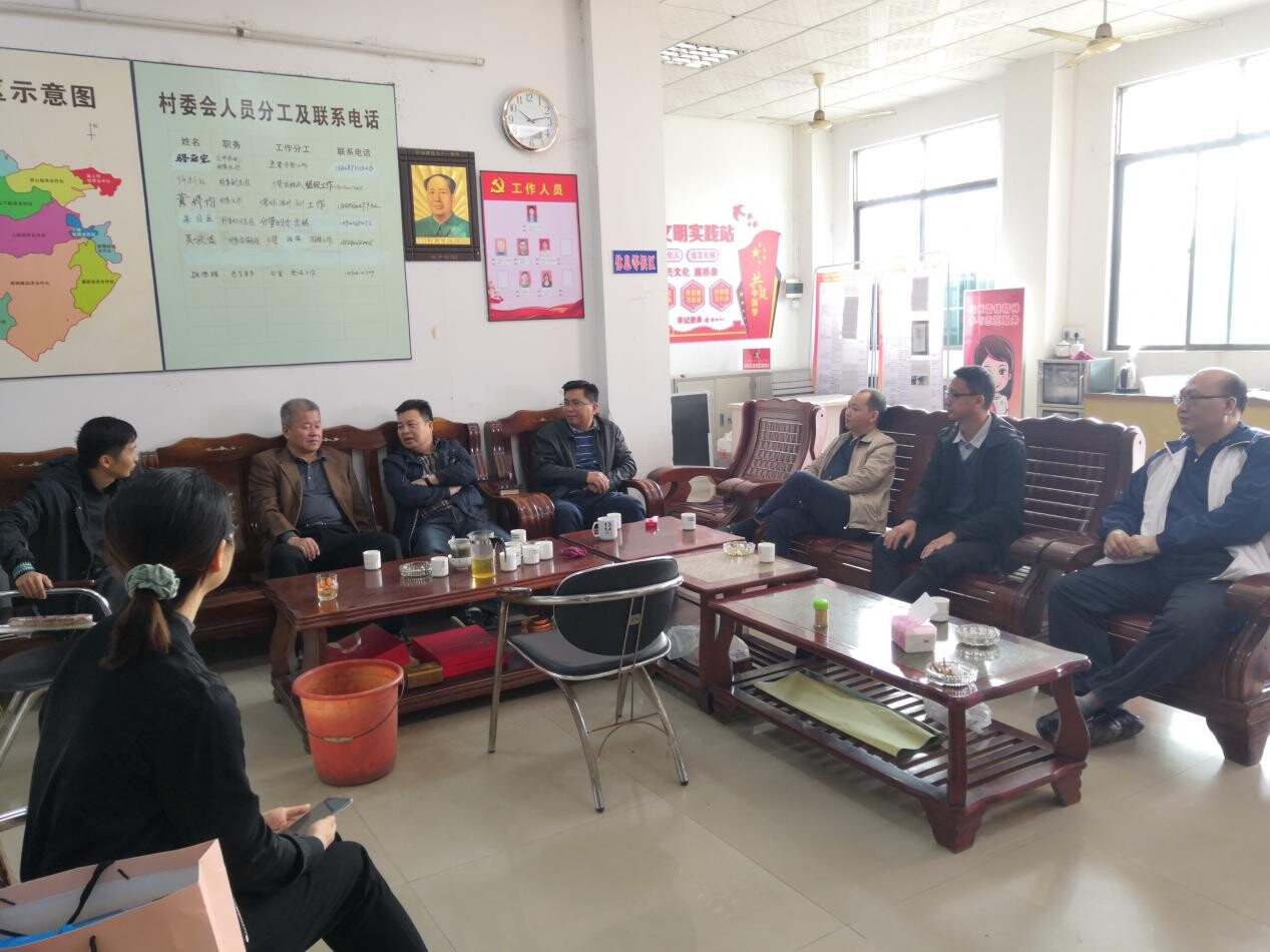 圖為博羅縣審計局黨組成員、公莊鎮黨委書記黃冠偉、一對一幫扶干部及壩子村村委座談