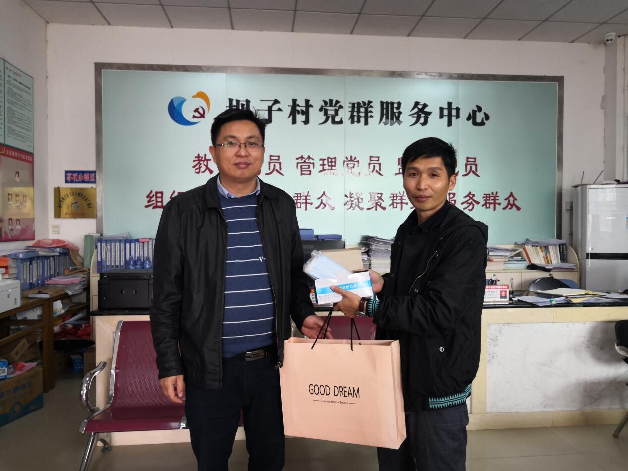 圖為博羅縣審計局黨組成員、副局長楊順斌代表縣審計局向壩子村捐贈口罩