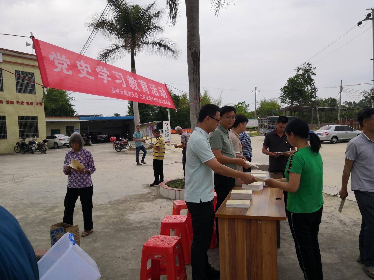 為貫徹落實習近平總書記在黨史學習教育動員大會上的重要講話精神,做到學史明理、學史增信、學史崇德、學史力行,教育引導黨員干部學黨史、悟思想、辦實事、開新局,同時加強黨支部間學習交流,2021年4月14日,博羅縣審計局黨支部前往掛鉤貧困村壩子村,與壩子村黨總支部共同開展黨史學習教育。縣審計局全體黨組成員、局務領導、扶貧干部,壩子村兩委干部,壩子村黨總支部黨員等參加了此次活動。本次活動包括三項內容:第一項內容是縣審計局黨組成員、副局長楊順斌同志,黨組成員、副局長、局黨支部副書記黃偉健同志代表審計局黨支部向壩子村村委及黨員贈送黨史學習教育系列讀物和普法書籍;第二項內容是壩子村村支書駱海宏同志總結2020年至今壩子村各項工作開展情況及審計局幫扶情況并講解2021年壩子村工作計劃;第三項內容是縣審計局黨組書記、局長、局黨支部書記陳可同志向參與活動人員講一堂黨課。