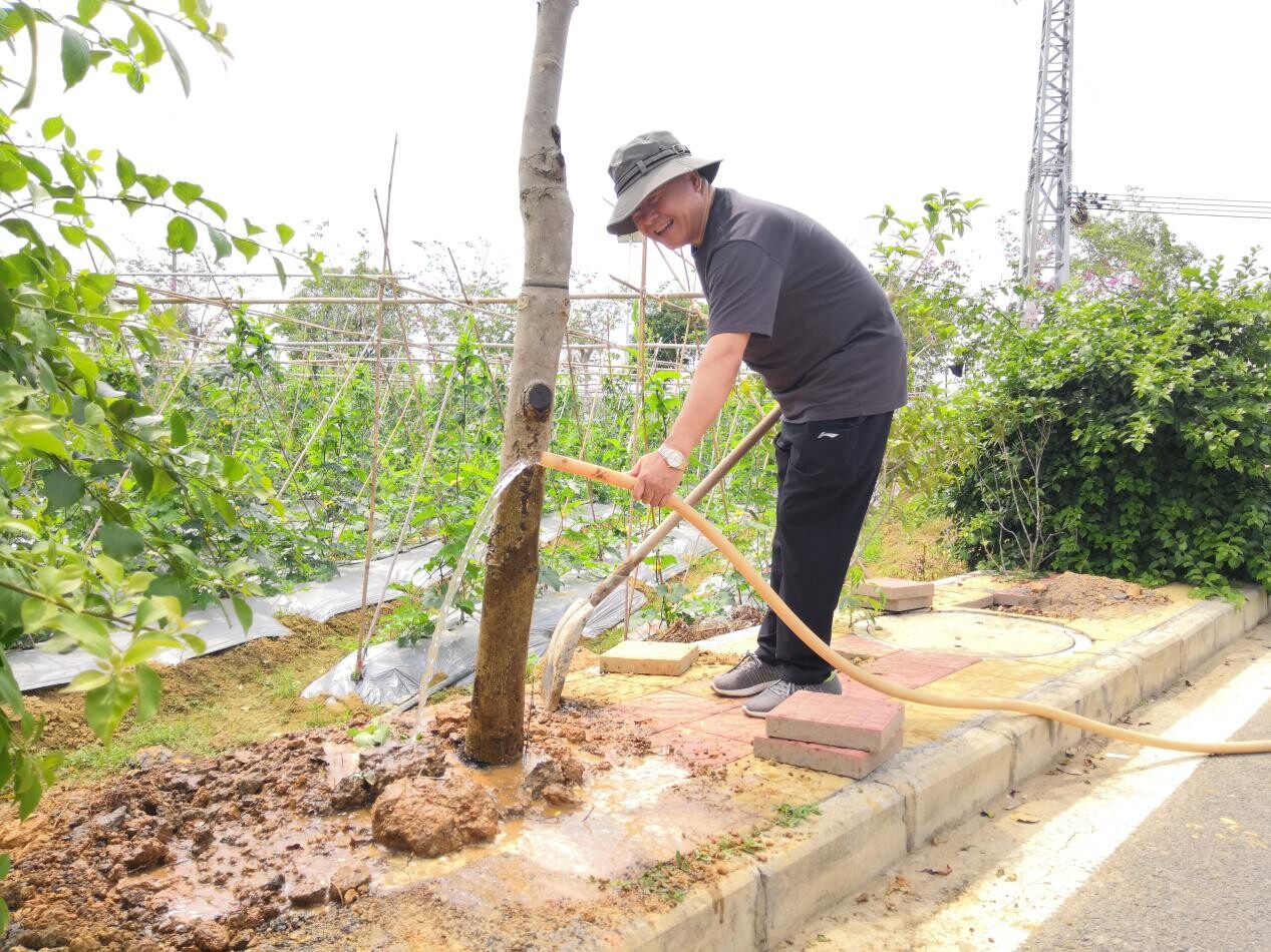 圖為博羅縣審計局黨組書記、局長陳可同志為剛栽種的樹苗澆水