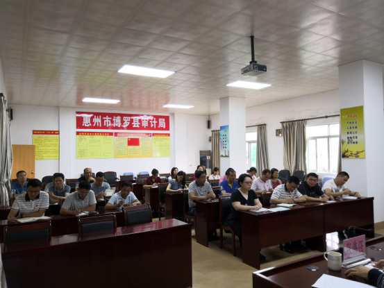 圖為縣審計局黨組書記陳志謀主持會議場景