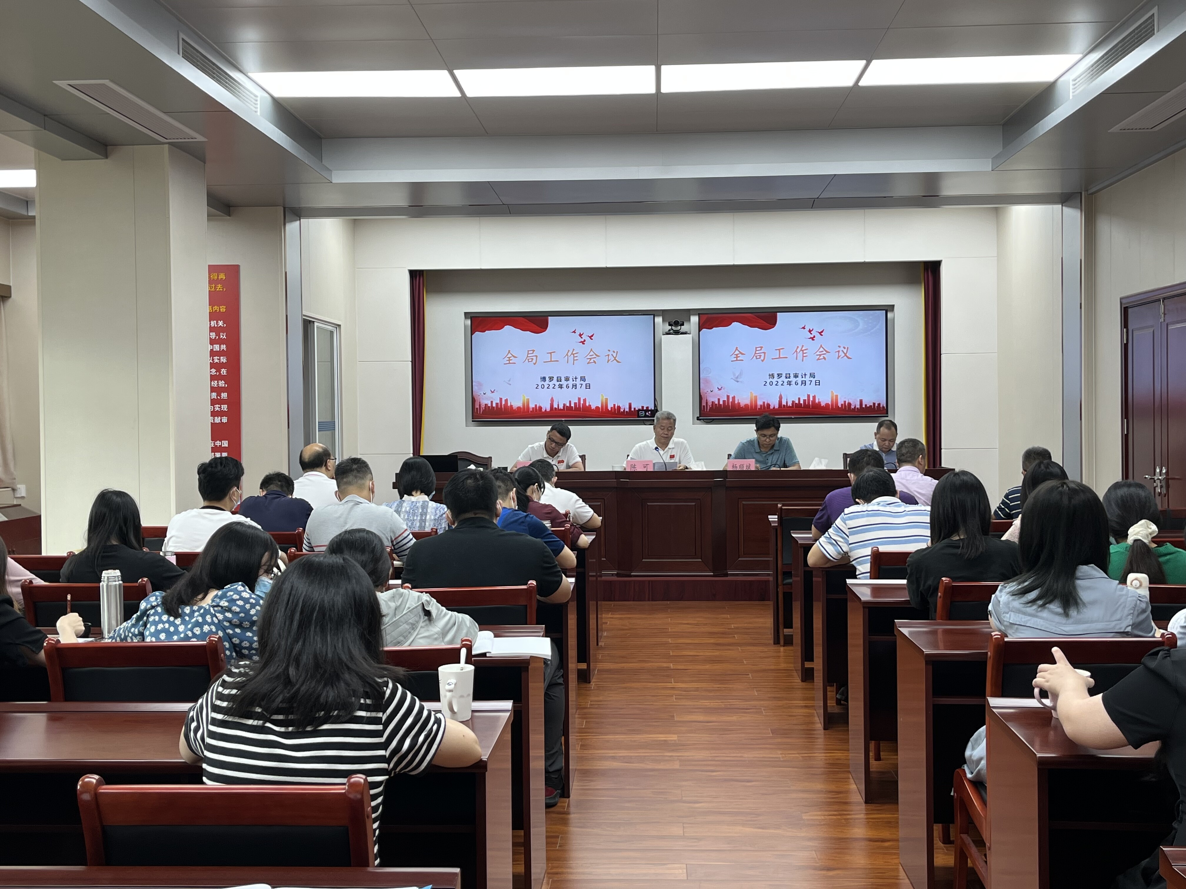 2022年6月7日,博羅縣審計(jì)局召開全局會(huì)議,傳達(dá)學(xué)習(xí)省第十三次黨代會(huì)精神和縣委常委會(huì)(擴(kuò)大)會(huì)議精神,并研究部署貫徹落實(shí)工作。會(huì)議由縣審計(jì)局黨組書記、局長(zhǎng)陳可主持,全體審計(jì)人員參加了此次會(huì)議。